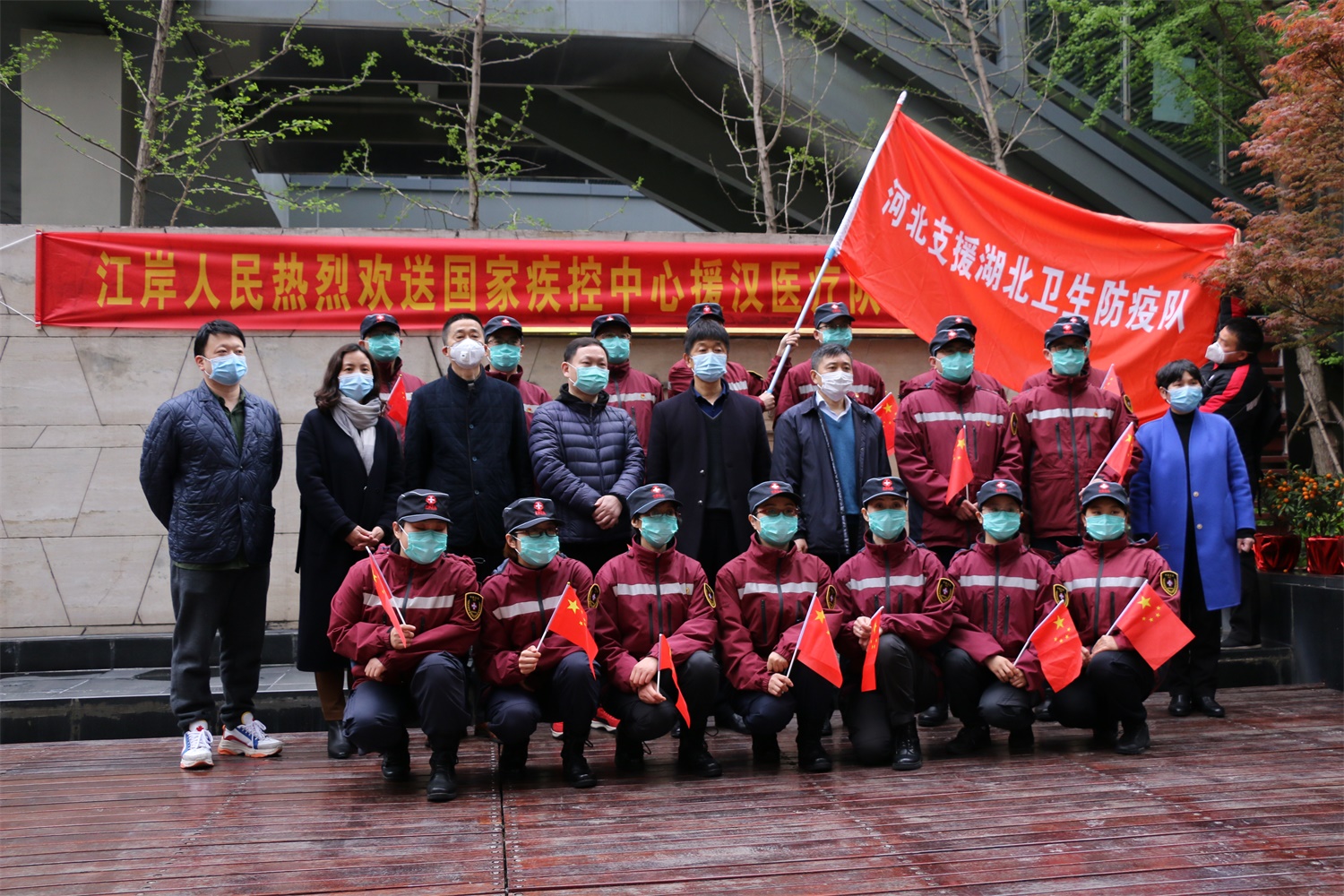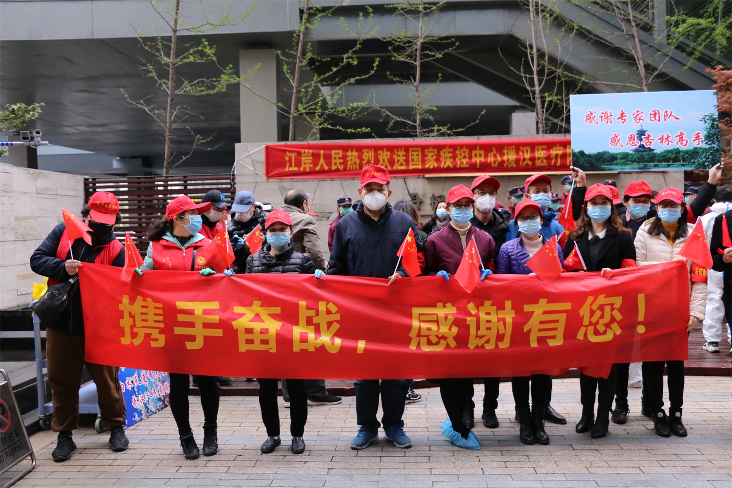 3月30日下午,湖北東信醫(yī)藥有限公司志愿者代表一行十三人應(yīng)邀參加了江岸區(qū)政府組織的河北省援漢醫(yī)療隊(duì)返程歡送儀式。江岸區(qū)有關(guān)部門(mén)的領(lǐng)導(dǎo)代表武漢人民感謝河北省第二批、第三批援漢醫(yī)療隊(duì)員的辛勤勞動(dòng)和無(wú)私付出,并向他們贈(zèng)送了錦旗和鮮花。