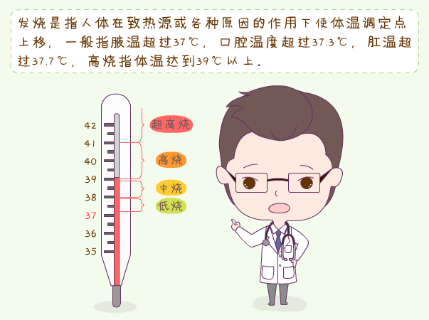 發(fā)熱是指機(jī)體在致熱原作用下或各種原因引起體溫調(diào)節(jié)中樞的功能障礙時(shí),體溫升高超出正常范圍,即體溫升高超出一天中正常體溫波動(dòng)的上限。臨床工作中通常采用肛溫≥38℃或腋溫≥37.5℃定義為發(fā)熱。