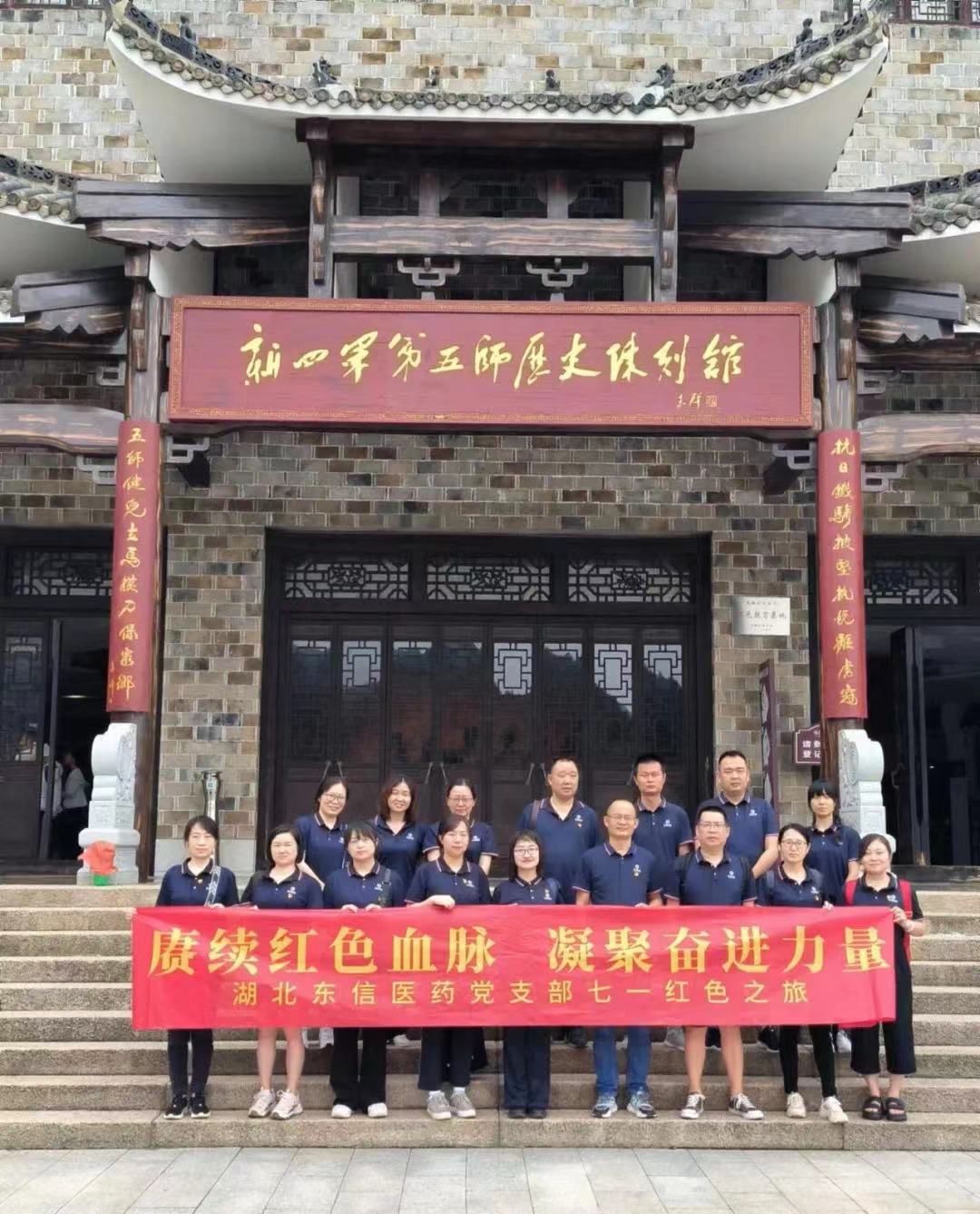 7月1日,為慶祝中國共產(chǎn)黨成立102周年,深入學(xué)習(xí)貫徹黨的二十大精神,回顧黨的光輝歷程,謳歌黨的豐功偉績,弘揚黨的優(yōu)良傳統(tǒng), 湖北東信醫(yī)藥有限公司黨支部組織全體黨員前往姚家山紅色教育基地開展“賡續(xù)紅色血脈,凝聚奮進力量”七一黨建活動。