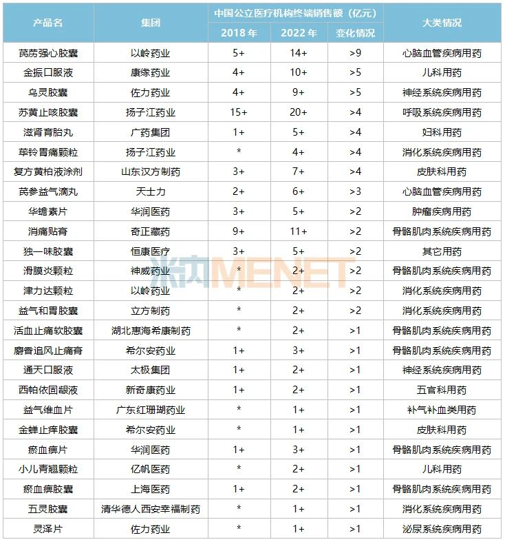 數(shù)據(jù)顯示,2018版國家基藥目錄新增的獨家中成藥中有25個產(chǎn)品2022年在中國公立醫(yī)療機構(gòu)終端的銷售額比進入目錄前(2018年)增長超過1億元。