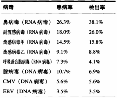 兒童的免疫系統(tǒng)尚未發(fā)育完善,比成人更容易受到病毒的侵害,兒科常見病毒感染的患病率與檢出率見下表。